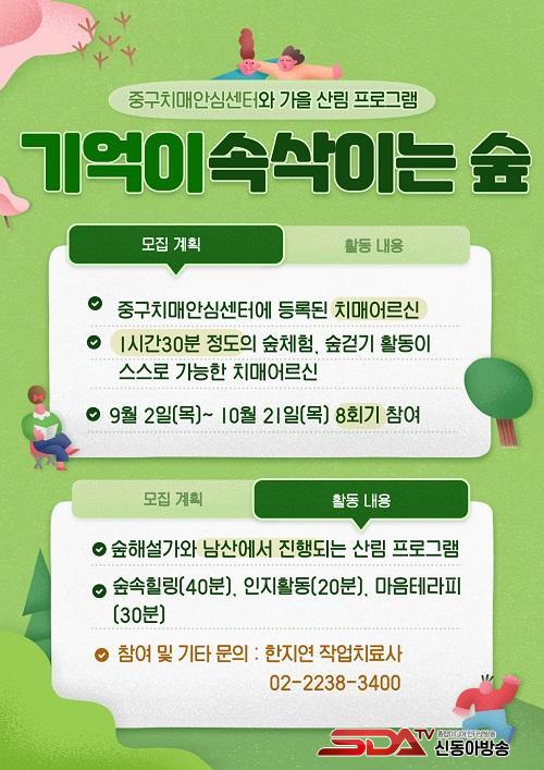 [½Åµ¿¾Æ¹æ¼Û´º½º=Â÷¼­À± ±âÀÚ] ¼­¿ï½Ã Áߺΰø¿ø³ìÁö»ç¾÷¼Ò´Â Áß±¸Ä¡¸Å¾È½É¼¾ÅÍ¿Í ÇÔ²² ÀϹݡ¤°æµµÀÎÁöÀå¾Ö ³ëÀÎ, Ä¡¸Å ³ëÀÎÀ» µ¹º¸´Â °¡Á·À» ´ë»óÀ¸·Î °¡À»Ã¶ ³²»êµÑ·¹±æ »ê¸² Ä¡À¯ ÇÁ·Î±×·¥À» ³»ÀϺÎÅÍ 10¿ù ÇÑ ´Þ°£ ¿î¿µÇÕ´Ï´Ù.