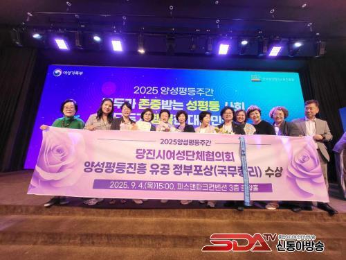 [½Åµ¿¾Æ¹æ¼Û=ÀÌÀçö±âÀÚ] ´çÁø½Ã(½ÃÀå ¿À¼ºÈ¯)´Â ´çÁø½Ã¿©¼º´ÜüÇùÀÇȸ(ȸÀå ±èÁ¾¼±)°¡ Áö³­ 4ÀÏ ¿©¼º°¡Á·ºÎ°¡ ÁÖÃÖÇÑ 2025³â ¿©¼º°¡Á·ºÎ ¾ç¼ºÆòµîÁÖ°£ ±â³äÇà»ç¿¡¼­ ¾ç¼ºÆòµîÁøÈï À¯°ø ´Üü ±¹¹«ÃѸ® ǥâÀ» ¹Þ¾Ò´Ù°í 5ÀÏ ¹àÇû´Ù.