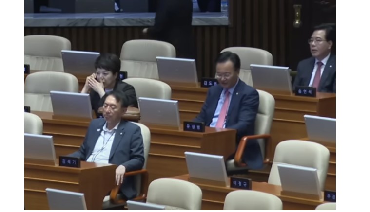 ÀÎÅÍ³Ý ¾ð·Ð '¹Ìµð¾î¸ù±¸' Ä«¸Þ¶ó°¡ ±¹¹ÎÀÇÈû ÀǼ®À» ÃÔ¿µÇÏ´ø Áß ÇØ´ç Àå¸éÀ» Àâ¾Æ³½ °ÍÀ¸·Î, ¼Û¾ð¼®ÀÌ ÀÚ¸®¿¡ ¾ÉÀº ä "¾Æ, Á¦¹ß ±×·¡ µÆÀ¸¸é ÁÁ¾ÒÀ»°É"À̶ó°í °íÇÔÀ» Ä¡ÀÚ, ¾ÕÀÚ¸®¿¡ ÀÖ´ø °°Àº ´ç À¯»ó¹üÀÌ ¼Û¾ð¼®À» µ¹¾Æº¸°í ¾¿ ¿ôÀ¸¸ç ÀÚ¸®¿¡¼ ÀϾ ȸÀÇÀå ¹ÛÀ¸·Î ³ª°¡´Â ¸ð½Àµµ Æ÷ÂøµÈ °ÍÀÌ´Ù.