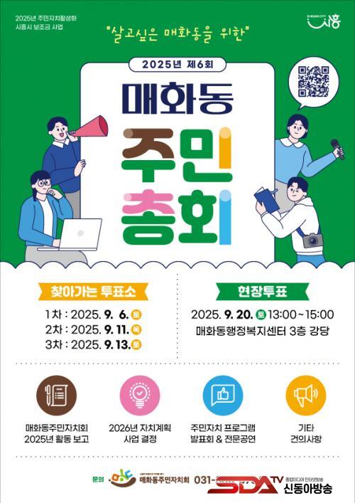 [½Åµ¿¾Æ¹æ¼Û ½ÃÈï½Ã=À̽ŵ¿±âÀÚ] ¸ÅÈ­µ¿ ÁÖ¹ÎÀÚġȸ(ȸÀå ±èÁ¤Àº)´Â 9¿ù 20ÀÏ 13½ÃºÎÅÍ 15½Ã±îÁö ¸ÅÈ­µ¿ ÇàÁ¤º¹Áö¼¾ÅÍ3Ãþ °­´ç¿¡¼­ 2025³â Á¦6ȸ ¸ÅÈ­µ¿ ÁÖ¹ÎÃÑȸ¸¦ °³ÃÖÇÑ´Ù.