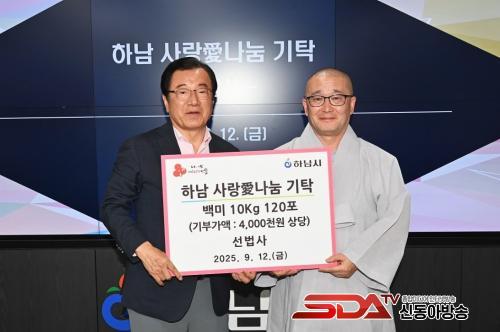 [½Åµ¿¾Æ¹æ¼Û Çϳ²½Ã=À̽ŵ¿±âÀÚ] Áö³­ 12ÀÏ, Çϳ²½Ã ±³»êµ¿¿¡ À§Ä¡ÇÑ ¼±¹ý»ç´Â ½ÅµµµéÀÇ ¸¶À½À» ´ãÀº ¹é¹Ì 120Æ÷(10Kg)¸¦ Çϳ²½Ã¿¡ Àü´ÞÇÏ°í ±âŹ½ÄÀ» °¡Á³´Ù.
