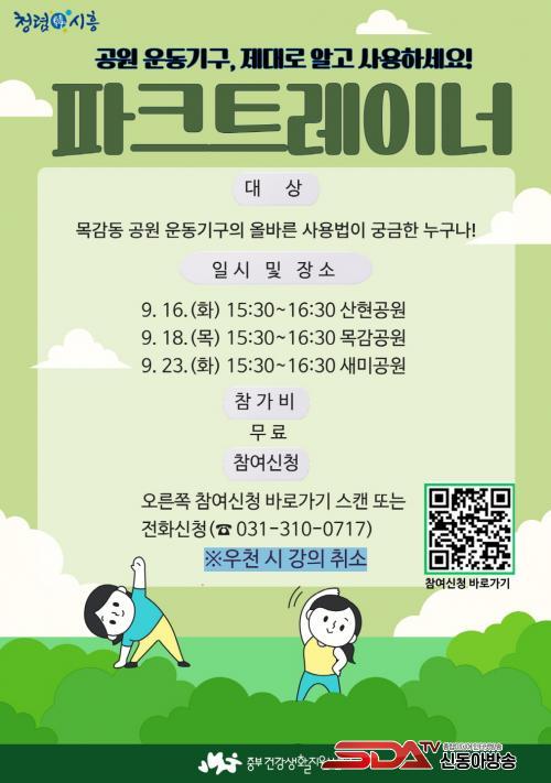 ¶ÇÇÑ, 9¿ù 26ÀÏ ´É°îµ¿ ½Å¾ÈÀνººô, 10¿ù 17ÀÏ ÀåÇöµ¿ LH18´ÜÁö ¿îµ¿±â±¸ Á¸¿¡¼­ ¿ÀÈÄ 4½ÃºÎÅÍ ÇÑ ½Ã°£¾¿ °Ç°­¾ÆÆÄÆ® ÁÖ¹ÎÀ» ´ë»óÀ¸·Î ¡®Ã£¾Æ°¡´Â ÆÄũƮ·¹À̳ʡ¯ ÇÁ·Î±×·¥À» ¿î¿µÇÒ ¿¹Á¤ÀÌ´Ù.