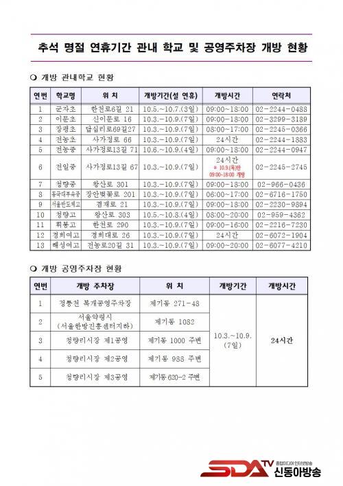 [½Åµ¿¾Æ¹æ¼Û µ¿´ë¹®±¸=À̽ŵ¿±âÀÚ] ¼­¿ï µ¿´ë¹®±¸´Â Ãß¼® ¿¬ÈÞ¸¦ ¸Â¾Æ Áֹΰú ¹æ¹®°´, ¿ª±Í¼º°´ µîÀÇ ÁÖÂ÷ ÆíÀǸ¦ µ½±â À§ÇØ 10¿ù 3ÀϺÎÅÍ 9ÀϱîÁö 7Àϰ£ °ü³» Çб³ ¹× °ø¿µÁÖÂ÷Àå 18°³¼Ò¸¦ ¹«·á·Î °³¹æÇÑ´Ù°í ¹àÇû´Ù.