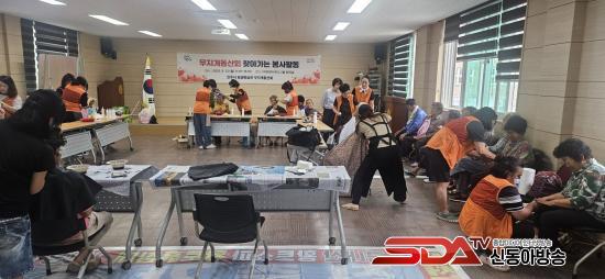 À̹ø ºÀ»çȰµ¿Àº ȸ¿ø 20¿© ¸íÀÌ Âü¼®ÇÏ¿© ¿ÀÀü9½ÃºÎÅÍ ¿ÀÈÄ 3½Ã±îÁö ¹Ìõ¸é ¾î¸£½Å 50¿© ¸í¿¡°Ô ÆÄ¸¶¿Í ĿƮ, ¿°»ö ÀÌ¡¤¹Ì¿ë¼­ºñ½º, ¼Õ ¸¶»çÁö, Á¦»§±â´É»ç¹Ý(¹Ú¹ÌÀÚ °­»ç) ¼ö°­»ýµéÀÌ ¸¸µç »§ 2Á¾À» °£½ÄÀ¸·Î Á¦°øÇÏ¿´´Ù.