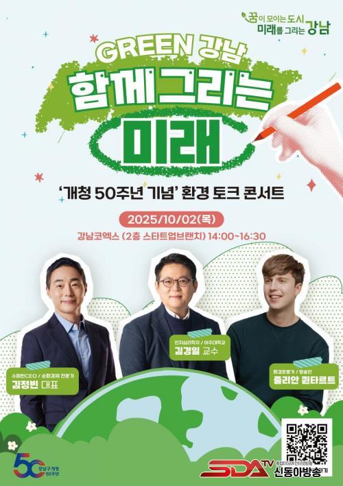 [½Åµ¿¾Æ¹æ¼Û °­³²±¸=À̽ŵ¿±âÀÚ] ²ÞÀÌ ¸ðÀÌ´Â µµ½Ã, ¹Ì·¡¸¦ ±×¸®´Â °­³²±¸°¡ °³Ã» 50ÁÖ³âÀ» ±â³äÇØ ¿À´Â 10¿ù 2ÀÏ ¿ÀÈÄ 2½Ã ÄÚ¿¢½º ½ºÅ¸Æ®¾÷ºê·£Ä¡¿¡¼­ ¡®GREEN °­³², ÇÔ²² ±×¸®´Â ¹Ì·¡¡¯¸¦ ÁÖÁ¦·Î ¡®È¯°æ ÅäÅ© Äܼ­Æ®¡¯¸¦ °³ÃÖÇÑ´Ù.