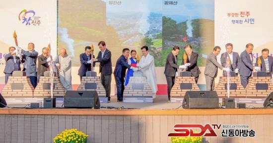 [½Åµ¿¾Æ¹æ¼Û °æ³²ÁøÁÖ=³²±Ã¿µ±â±âÀÚ] ÁøÁֽô 10ÀÏ Ä¥¾Ïµ¿ ³²°­ ¾ß¿Ü¹«´ë¿¡¼­ Á¶±ÔÀÏ ÁøÁÖ½ÃÀåÀ» ºñ·ÔÇØ µµÀÇ¿ø, ½ÃÀÇ¿ø, ½Ã¹Î µî 2500¿© ¸íÀÌ Âü¼®ÇÑ °¡¿îµ¥ ¡®Á¦30ȸ ÁøÁֽùÎÀÇ ³¯ ±â³ä½Ä¡¯À» ¼ºÈ²¸®¿¡ °³ÃÖÇß´Ù.