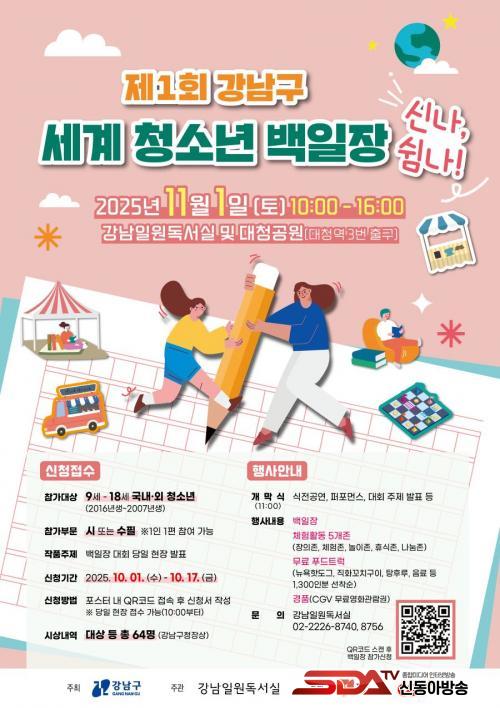 [½Åµ¿¾Æ¹æ¼Û °­³²±¸=À̽ŵ¿±âÀÚ] ²ÞÀÌ ¸ðÀÌ´Â µµ½Ã, ¹Ì·¡¸¦ ±×¸®´Â °­³²±¸°¡ ¿À´Â 11¿ù 1ÀÏ ¿ÀÀü 10½ÃºÎÅÍ ¿ÀÈÄ 4½Ã±îÁö °­³²ÀÏ¿øµ¶¼­½Ç°ú ´ëû°ø¿ø ÀÏ´ë¿¡¼­ ¡®Á¦1ȸ °­³²±¸ ¼¼°èû¼Ò³â¹éÀÏÀå ½Å³ª, ½°³ª!¡¯¸¦ °³ÃÖÇÑ´Ù. ÀÌ Çà»ç´Â ±¹³»‧¿Ü ±¹Àû û¼Ò³âÀÌ ÇÔ²²ÇÏ´Â Àü±¹ ÃÖÃÊÀÇ ±âÃÊÁöÀÚü ÁÖ°ü ¹éÀÏÀåÀ¸·Î, ´Ù¹®È­ ½Ã´ë¿Í K-ÄÃó È®»ê È帧¿¡ ¹ß¸ÂÃá ¹®ÇÐÃàÁ¦´Ù.