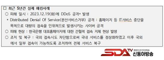 ÇÑÆí Çѱ¹ÀºÇàÀº ¿ÃÇØ óÀ½À¸·Î ½Ç½ÃµÈ »çÀ̹öº¸¾È ½ÇÅÂÆò°¡¿¡¼ 43.05Á¡(³·Àº ¼öÁØ)À» ¹Þ¾ÒÀ¸¸ç, ´Ù¼öÀÇ º¸¾ÈÀåºñ°¡ 5~7³âÂ÷·Î ³ëÈÄÈµÈ »óÅÂÀÎ °ÍÀ¸·Î È®ÀεƴÙ. ±×·³¿¡µµ ºÒ±¸ÇÏ°í ¿¹»êÀº Ãà¼ÒµÇ°í ÀÎ·Â È®Ãæ °èȹµµ ±¸Ã¼ÈµÇÁö ¾Ê¾Æ, ÇâÈÄ ´ë±Ô¸ð °ø°ÝÀ̳ª ±ÝÀ¶¸Á ħÅõ ½Ã ÇÇÇØ°¡ È®»êµÉ ¿ì·Á°¡ Á¦±âµÈ´Ù.