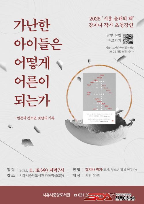 [½Åµ¿¾Æ¹æ¼Û ½ÃÈï½Ã=À̽ŵ¿±âÀÚ] ½ÃÈï½Ã Áß¾Óµµ¼­°üÀº ¡®2025³â ½ÃÈï ¿ÃÇØÀÇ Ã¥¡¯À¸·Î ¼±Á¤µÈ ¡¸°¡³­ÇÑ ¾ÆÀ̵éÀº ¾î¶»°Ô ¾î¸¥ÀÌ µÇ´Â°¡¡¹ÀÇ ÀúÀÚ °­Áö³ª ÀÛ°¡¸¦ ÃÊÃ»ÇØ 11¿ù 19ÀÏ ¿ÀÈÄ 7½Ã Áß¾Óµµ¼­°ü 3Ãþ ´Ù¸ñÀû½Ç¿¡¼­ ½Ã¹Î °­¿¬È¸¸¦ °³ÃÖÇÑ´Ù.