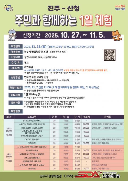 ¼ö°·á´Â ¹«·áÀ̸ç, Àç·áºñ°¡ ÀÖ´Â °ú¸ñÀº Âü°¡ÀÚ ºÎ´ãÀ¸·Î ÁøÇàÇÑ´Ù. ±âŸ ÀÚ¼¼ÇÑ »çÇ×Àº Æò»ýÇнÀ°ü ´©¸®Áý ¶Ç´Â Æò»ýÇнÀ°ü ±³À°¿î¿µÆÀ(055-749-6873)À¸·Î ¹®ÀÇÇÏ¸é µÈ´Ù.