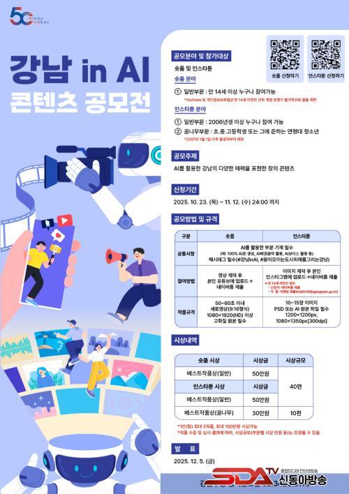 [½Åµ¿¾Æ¹æ¼Û °­³²±¸=À̽ŵ¿±âÀÚ] ²ÞÀÌ ¸ðÀÌ´Â µµ½Ã, ¹Ì·¡¸¦ ±×¸®´Â °­³²±¸°¡ ±¸¹ÎÀÌ Á÷Á¢ °­³²ÀÇ ¸Å·ÂÀ» ¾Ë¸®´Â âÀÛÀÚ°¡ µÇ´Â ¡®2025 °­³² in AI ÄÜÅÙÃ÷ °ø¸ðÀü¡¯À» 10¿ù 23ÀϺÎÅÍ 11¿ù 12ÀϱîÁö °³ÃÖÇÑ´Ù. ¼ôÆû ¿µ»ó°ú ÀνºÅ¸Å÷ µÎ °¡Áö ºÐ¾ß¿¡¼­ AI¸¦ Ȱ¿ëÇÑ ÀÛǰÀ» ´ë»óÀ¸·Î Çϸç, ƯÈ÷ ÀνºÅ¸Å÷ ºÐ¾ß¿¡´Â û¼Ò³â Âü¿©¸¦ À§ÇÑ ¡®²Þ³ª¹« ºÎ¹®¡¯À» ½Å¼³Çß´Ù.