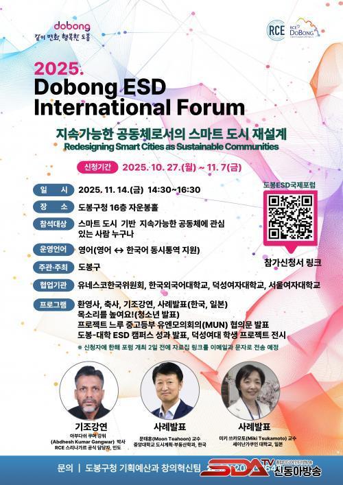 [½Åµ¿¾Æ¹æ¼Û µµºÀ±¸=À̽ŵ¿±âÀÚ] ¼­¿ï µµºÀ±¸°¡ ¿À´Â 11¿ù 14ÀÏ µµºÀ±¸Ã» 16Ãþ ÀÚ¿îºÀȦ¿¡¼­ ¡®2025 µµºÀ ESD(Áö¼Ó°¡´É¹ßÀü±³À°) ±¹Á¦Æ÷·³¡¯À» °³ÃÖÇÑ´Ù.