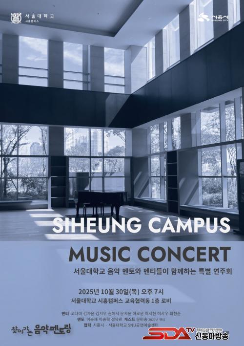 [½Åµ¿¾Æ¹æ¼Û ½ÃÈï½Ã=À̽ŵ¿±âÀÚ] ¼­¿ï´ëÇб³ ½ÃÈïÄ·ÆÛ½º¿Í ½ÃÈï½Ã°¡ Çù·ÂÇÏ´Â ¡®¼­¿ï´ëÇб³ À½¾Ç ¸àÅä-¸àƼ Ưº° ¿¬ÁÖȸ¡¯°¡ 10¿ù 30ÀÏ ¿ÀÈÄ 7½Ã, ¼­¿ï´ëÇб³ ½ÃÈïÄ·ÆÛ½º ±³À°Çù·Âµ¿ 1Ãþ ·Îºñ(½ÃÈï½Ã ¼­¿ï´ëÇзΠ173)¿¡¼­ ¿­¸°´Ù.