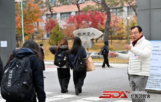 ÀÌ ½ÃÀåÀº Ãß¿î ³¯¾¾ ¼Ó¿¡¼­µµ ½ÃÇèÀå ¾ÕÀ» ÁöŰ´Â Çкθð¿Í ±³Á÷¿øµé¿¡°Ô °¨»ç Àλ縦 ÀüÇϸç, ±³¹®À» Åë°úÇÏ´Â ¼öÇè»ýµé¿¡°Ô ¡°±×µ¿¾È È기 ¶¡ÀÇ °á½ÇÀÌ ºûÀ» ¹ßÇÏ´Â ³¯¡±À̶ó¸ç ¡°Çϳ²½Ã´Â ¿©·¯ºÐµéÀÌ ¿À·ÔÀÌ ½ÃÇè¿¡ ÁýÁßÇÒ ¼ö ÀÖµµ·Ï ³¡±îÁö ÇÔ²² Çϰڴ١±°í °Ý·ÁÀÇ ¸»À» °Ç³Þ´Ù.