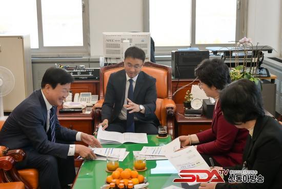 »çÁø=¿©¼ö½Ãû, Á¤±â¸í ¿©¼ö½ÃÀåÀÌ Áö³­ 14ÀÏ ³»³âµµ Á¤ºÎ ¿¹»ê¾È¿¡ ´ëÇÑ ±¹È¸ ½ÉÀǸ¦ ¾ÕµÎ°í Áö¿ª ÁÖ¿ä Çö¾È»ç¾÷ÀÇ ±¹ºñ Áõ¾×À» À§ÇØ ±¹È¸¸¦ ¹æ¹®, ±èº´±â ´õºÒ¾î¹ÎÁÖ´ç ¿ø³»´ëÇ¥¸¦ ¸¸³µ´Ù.