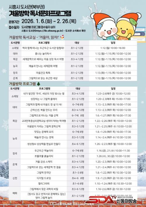 ¡®°Ü¿ï¹æÇÐ ÇÁ·Î±×·¥¡¯µµ Ã¥À» ±â¹ÝÀ¸·Î ÇÑ Ã¢ÀÇÀûÀÌ°í ´Ù¾çÇÑ È°µ¿À» Á¦°øÇÑ´Ù. ´ëÇ¥ ÇÁ·Î±×·¥À¸·Î´Â ¡ã¼Ò·¡ºûµµ¼°ü ¡®³»°¡ ¹ß°ßÇÑ ¡®¿ì¸®¡¯ ¼¼»óÀÇ °¡Àå ºû³ª´Â º°¡¯ ¡ã´É°îµµ¼°ü ¡®¸ÀÀÖ´Â ¹®ÇØ·Â ¿ä¸®¡¯ ¡ã¸ñ°¨µµ¼°ü ¡®±×¸²Ã¥À¸·Î ¶°³ª´Â °Ü¿ï »êÃ¥¡¯ µîÀÌ ÀÖÀ¸¸ç, ¾ÆÀ̵éÀÌ Àбâ Ȱµ¿°ú ÇÔ²² âÀÇ¡¤Á¤¼¡¤¹®È üÇèÀ» Æø³Ð°Ô °æÇèÇÒ ¼ö ÀÖµµ·Ï ±¸¼ºµÆ´Ù.