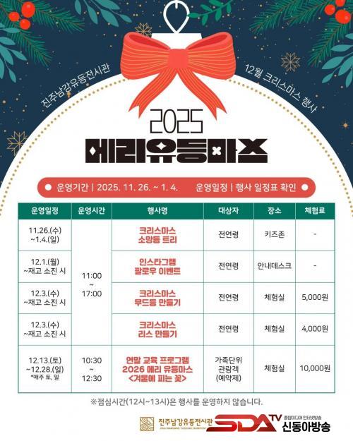 Àü½Ã°üÀº 12¿ù ÇÑ ´Þ µ¿¾È µû¶æÇÑ ºûÀ» ´ãÀº ¡®Å©¸®½º¸¶½º ¹«µåµî ¸¸µé±â¡¯, °³¼ºÀÌ µ¸º¸ÀÌ´Â ¡®Å©¸®½º¸¶½º ¸®½º ¸¸µé±â¡¯, °¡Á·´ÜÀ§ ±³À° ÇÁ·Î±×·¥ÀÎ ¡®°Ü¿ï¿¡ ÇÇ´Â ²É¡¯ µî âÀÇÀû üÇè ÇÁ·Î±×·¥À» ¿î¿µÇÑ´Ù.