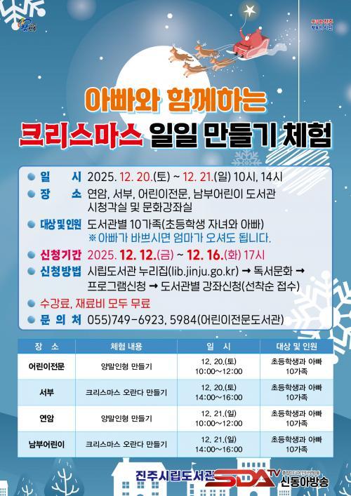[½Åµ¿¾Æ¹æ¼Û °æ³²ÁøÁÖ=³²±Ã¿µ±â±âÀÚ] ÁøÁֽø³µµ¼­°üÀº ¡®¾Æºü¿Í ÇÔ²²ÇÏ´Â 2025³â Å©¸®½º¸¶½º ÀÏÀÏ ¸¸µé±â üÇ衯 Ư°­ Âü°¡ÀÚ¸¦ ¸ðÁýÇÑ´Ù.