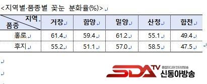 Á¶»ç °á°ú, ÁÖ¿ä ǰÁ¾ÀÎ ¡®ÈÄÁö¡¯ÀÇ Æò±Õ ²É´« ºÐÈÀ²Àº 57%·Î Àü³â(51%)º¸´Ù ³ô¾ÆÁ³°í, ¡®È«·Î¡¯´Â 54%·Î Àü³â(53%)°ú ºñ½ÁÇÑ ¼öÁØÀ» º¸¿´´Ù. ÃÖ±Ù 5³â Æò±Õ°ú ºñ±³ÇÏ¸é ¡®ÈÄÁö¡¯´Â 4% ³ô°í, ¡®È«·Î¡¯´Â 3% ³·Àº ¼öÄ¡´Ù.