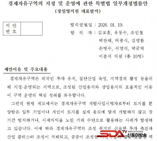 À̾î Á¤ ÀÇ¿øÀº ¡°À̹ø °³Á¤¾ÈÀÌ ÀÎõÀ» Æ÷ÇÔÇÑ Àü±¹ 9°³ °æÁ¦ÀÚÀ¯±¸¿ªÀÇ À¯ÈÞÅäÁö ¹®Á¦¸¦ ÇØ°áÇØ ³ª°¡´Â Á¦µµÀû Ãâ¹ßÁ¡ÀÌ µÉ °Í¡±À̶ó¸ç,¡°°æÁ¦ÀÚÀ¯±¸¿ªÀÌ ½ÇÁúÀûÀÎ ÅõÀÚ¿Í ÀÏÀÚ¸®¸¦ âÃâÇϰí, ÁÖ¹ÎÀÌ Ã¼°¨ÇÒ ¼ö ÀÖ´Â Áö¼Ó°¡´ÉÇÑ µµ½Ã·Î ±â´ÉÇϵµ·Ï Çϱâ À§ÇÑ ÃÖ¼ÒÇÑÀÇ ÀåÄ¡¡±¶ó°í °Á¶Çß´Ù.