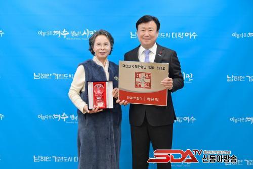 [½Åµ¿¾Æ¹æ¼Û ¿©¼ö=±è±â³² ±âÀÚ] ¿©¼ö½Ã°¡ ¡®Á¦35Â÷ ´ëÇѹα¹ ´ëÇѸíÀÎ ¼±Á¤¡¯¿¡¼­ ÀüÅë ÇѰú¡¤¿À¶õ´Ù ºÐ¾ß 1È£ ¸íÀÎÀ¸·Î ¼Û½Ã¸¶À» ÁÖ½Äȸ»ç ¹ÚÀ±´ö ´ëÇ¥°¡ ¼±Á¤µÆ´Ù°í ¹àÇû´Ù.