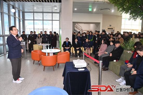 ÇöÆÇ Á¦¸·½Ä¿¡¼­´Â Á¾ÇÕº¹ÁöŸ¿î 1Ãþ ·Îºñ Á¤¹®¿¡ ¼³Ä¡µÈ ÇöÆÇÀÌ °ø°³µÇ¸ç Çϳ² ±³À° ÀÚÄ¡ ½Ã´ëÀÇ °³¸·À» ¾Ë·È´Ù. Á¦¸·½Ä Á÷ÈÄ Âü¼®ÀÚµéÀº ½Å¼³ÃßÁø´ÜÀÌ ½Ç¹«¸¦ ¼öÇàÇÒ 6ÃþÀ¸·Î À̵¿ÇØ ½Ã¼³ ¶ó¿îµùÀ» ÁøÇàÇϸç Çϳ² ±³À°ÀÇ ¹Ì·¡°¡ ±×·ÁÁú ÇöÀåÀ» Á÷Á¢ »ìÆñ´Ù.