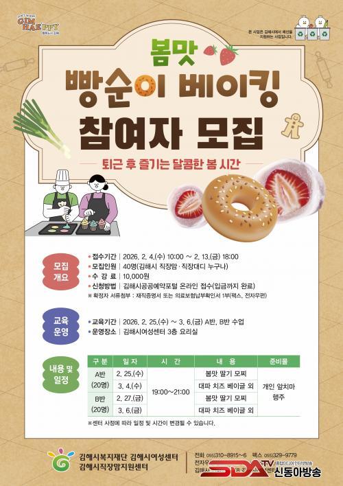 [½Åµ¿¾Æ¹æ¼Û °æ³²±èÇØ=³²±Ã¿µ±â±âÀÚ] (Àç)±èÇØ½Ãº¹ÁöÀç´Ü Á÷À帾Áö¿ø¼¾ÅÍ´Â ±èÇØ½Ã Á÷À帾¡¤´ëµð¸¦ À§ÇÑ Åð±Ù ÈÄ º£ÀÌÅ· ÇÁ·Î±×·¥ ¡ºº½¸À, »§¼øÀÌ º£ÀÌÅ·¡» Âü¿©ÀÚ¸¦ ¸ðÁýÇÑ´Ù.