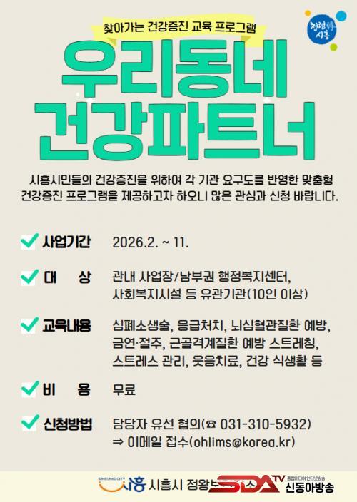 ÀÌÇüÁ¤ ½ÃÈï½Ãº¸°Ç¼ÒÀåÀº ¡°¿ì¸® µ¿³× °Ç°ÆÄÆ®³Ê´Â ½Ã¹ÎÀÌ ÀÖ´Â °÷À¸·Î Á÷Á¢ ã¾Æ°¡´Â »ýȰ ¹ÐÂøÇü °Ç°ÁõÁø »ç¾÷¡±À̶ó¸ç ¡°¾ÕÀ¸·Îµµ ½Ã¹Î ´©±¸³ª °Ç°ÇÑ »îÀ» ½ÇõÇÒ ¼ö ÀÖµµ·Ï °øÁ¤Çϰí Åõ¸íÇÑ °Ç°Áö¿ø ¼ºñ½º¸¦ ²ÙÁØÈ÷ È®´ëÇØ ³ª°¡°Ú´Ù¡±¶ó°í ¸»Çß´Ù.