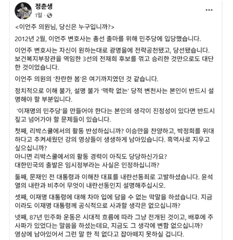 Á¤Ãá»ý ÀÇ¿øÀÌ Áö³­ 18ÀÏ À̾ðÁÖ ÀÇ¿ø¿¡°Ô Á¤ÁßÇÏ°Ô 5´ë ÀÇȤ¿¡ ´ëÇÑ ÇØ¸íÀ» Ã˱¸Çß´Ù. Á¤ ÀÇ¿ø sns