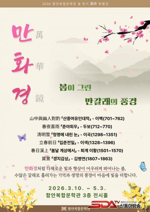 [½Åµ¿¾Æ¹æ¼Û °æ³²ÇÔ¾È=À̽ŵ¿±âÀÚ] ÇԾȱºÀº 3¿ù 10ÀϺÎÅÍ 5¿ù 3ÀϱîÁö ÇԾȺ¹ÇÕ¹®Çаü 3Ãþ Àü½ÃȦ¿¡¼­ 2026 º½ ÇѽÃ(ùÓãÌ) Ưº°Àü ¡®¸¸È­°æ(Ø¿ü¤Ìð) – º½ÀÌ ±×¸° ¸¸ °¥·¡ÀÇ Ç³°æ¡¯À» °³ÃÖÇÑ´Ù°í ¹àÇû´Ù.