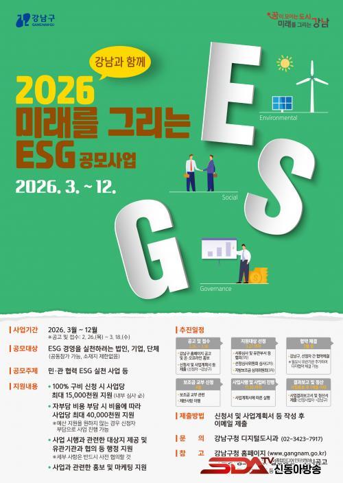 ½ÅûÀº ±¸Ã» ȨÆäÀÌÁö¿¡¼ ½Åû¼¸¦ ³»·Á¹Þ¾Æ ÀÛ¼º ÈÄ °ü·Ã ¼·ù¿Í ÇÔ²² À̸ÞÀÏ(eun0310@gangnam.go.kr)·Î Á¦ÃâÇÏ¸é µÈ´Ù. Á¢¼ö ¸¶°¨Àº 3¿ù 18ÀÏÀ̸ç, ½ÇÇö °¡´É¼º°ú Áö¼Ó°¡´É¼º, »çȸÀû ÆÄ±ÞÈ¿°ú µîÀ» ½É»çÇØ 3¿ù Áß °á°ú¸¦ ¹ßÇ¥ÇÒ ¿¹Á¤ÀÌ´Ù. ÀÚ¼¼ÇÑ ³»¿ëÀº ±¸Ã» ȨÆäÀÌÁö °ø°í¹®¿¡¼ È®ÀÎÇÒ ¼ö ÀÖ´Ù.