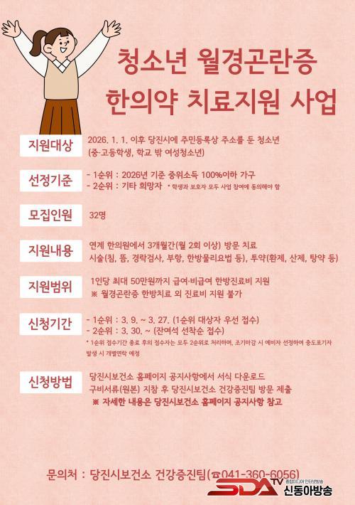 ½Åû ÀÚ°ÝÀº 2026³â 1¿ù 1ÀÏ ±âÁØ ´çÁø½Ã¿¡ ÁÖ¼Ò¸¦ µÐ û¼Ò³â(Áß°íµîÇб³, Çб³ ¹Û û¼Ò³â ¿©Çлý)À̸ç, ¼±Á¤ ±âÁØÀº 1¼øÀ§·Î 2026³â ±âÁØ ÁßÀ§¼Òµæ 100% ÀÌÇÏ °¡±¸, 2¼øÀ§·Î ¿ù°æÅë Ä¡·á¸¦ Èñ¸ÁÇÏ´Â ¿©¼º û¼Ò³âÀÌ´Ù.
