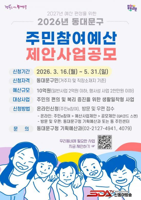 [½Åµ¿¾Æ¹æ¼Û µ¿´ë¹®±¸=À̽ŵ¿±âÀÚ] ¼­¿ï µ¿´ë¹®±¸´Â 2027³â ¿¹»êÆí¼ºÀ» À§ÇÑ 2026³âµµ ¡®ÁÖ¹ÎÂü¿©¿¹»ê»ç¾÷ ¾ÆÀ̵ð¾î °ø¸ð¡¯¸¦ 5¿ù 31ÀϱîÁö ÁøÇàÇÑ´Ù.