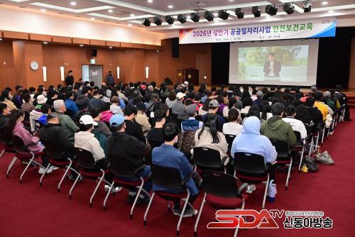 [½Åµ¿¾Æ¹æ¼Û °æ³²ÁøÁÖ=±è¸í¼ö±âÀÚ] ÁøÁֽô 2026³â »ó¹Ý±â °ø°øÀÏÀÚ¸®»ç¾÷ Âü¿©ÀÚÀÇ ¾ÈÀüÇÑ ±Ù¹«È¯°æ Á¶¼º°ú »ç°í ¿¹¹æÀ» À§ÇØ 24ÀÏ ½Ãû ½Ã¹ÎȦ¿¡¼ ¾ÈÀüº¸°Ç±³À°À» ½Ç½ÃÇß´Ù.
