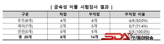 ☐ 14°³ Á¦Ç°(70.0%)¿¡¼ ¾ÈÀü±âÁØÀ» ÃʰúÇÏ´Â ±Ý¼Ó¼º À̹°(¼í°¡·ç) °ËÃâ