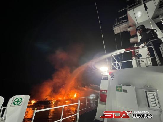 ÇØ°æÀº °æºñÇÔÁ¤ µµÂø ÈÄ ¾î¼± ¼±Ã¼ Àüü·Î ºÒ±æÀÌ È®»ê ÁßÀÎ °ÍÀ» È®ÀÎ ÈÄ ¼Òȼö¸¦ ÀÌ¿ëÇØ ¼ÒÈ ÀÛ¾÷À» ÁøÇàÇϰí ÀÖÁö¸¸ ºÒ±æÀÌ °Å¼¼ ¾î·Á¿òÀ» °Þ°í ÀÖ´Ù.