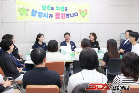 [½Åµ¿¾Æ¹æ¼Û Àü³²±¤¾ç=¹Ú±¤¿Á±âÀÚ] ±¤¾ç½Ã(½ÃÀå Á¤ÀÎÈ­)´Â Áö³­ 8¿ù 29ÀÏ È°±âÂù Á÷Àå ¹®È­¸¦ Á¶¼ºÇϱâ À§ÇØ ¡®±¤¾ç½Ã°¡ ÀÀ¿øÇÕ´Ï´Ù¡¯ Çà»ç¸¦ ¿­°í °ø¿ø°ú Á÷¿øµé°ú ¼ÒÅëÀÇ ½Ã°£À» °¡Á³´Ù.