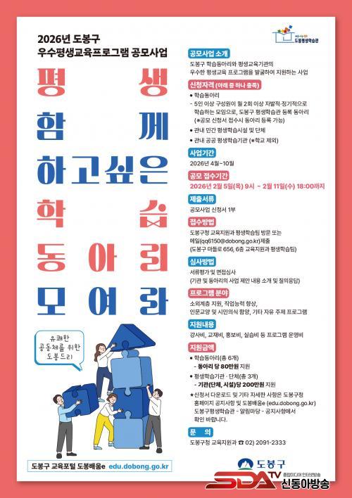 [½Åµ¿¾Æ¹æ¼Û µµºÀ±¸=À̽ŵ¿±âÀÚ] ¼­¿ï µµºÀ±¸°¡ 2¿ù 5ÀÏ ¿ÀÀü 9½ÃºÎÅÍ 11ÀÏ ¿ÀÈÄ 6½Ã±îÁö ¿ì¼ö Æò»ý±³À° ÇÁ·Î±×·¥À» °ø¸ðÇÑ´Ù.