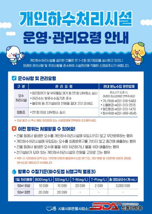 ½Ã´Â °³ÀÎÇϼö󸮽ü³ÀÇ Àü¿ø Â÷´Ü ¿©ºÎ¿Í ¼Ûdz±â Á¤»ó ÀÛµ¿ »óŸ¦ ºñ·ÔÇØ ¹æ·ù¼ö ¼öÁú ÀÚ°¡ÃøÁ¤ ÀÌÇà ¿©ºÎ, °ü¸® ±âÁØ Áؼö ¿©ºÎ¸¦ Á¡°ËÇÑ´Ù. ¶ÇÇÑ Á¤È­Á¶¿Í ¿À¼ö󸮽ü³ÀÇ ¿¬ 1ȸ ÀÌ»ó ³»ºÎ û¼Ò ÀÌÇà ¿©ºÎ¿Í ÇÔ²², ¿À¼ö¸¦ ¹«´Ü ¹æ·ùÇϰųª ºñ¹Ð ¹èÃⱸ¸¦ ¼³Ä¡ÇÏ´Â µî ºÒ¹ý ÇàÀ§ ¿©ºÎµµ ÁßÁ¡ÀûÀ¸·Î »ìÇÊ ¿¹Á¤ÀÌ´Ù.