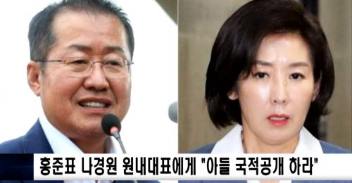 [½Åµ¿¾Æ¹æ¼Û´º½º=±èÁøÁÖ ±âÀÚ] ÀÚÀ¯Çѱ¹´ç È«ÁØÇ¥ Àü ´ëÇ¥°¡ ³ª°æ¿ø ¿ø³»´ëÇ¥¿¡°Ô ¿øÁ¤Ãâ»ê ÀÇȤÀ» Ç®±â À§ÇØ ¾Æµé ±¹ÀûÀ» ½º½º·Î ¹àÈ÷¶ó°í ¿ä±¸ÇßÁö¸¸ ³ª ¿ø³»´ëÇ¥´Â À̸¦ ÀÏÃàÇß½À´Ï´Ù. È« Àü ´ëÇ¥´Â ¾îÁ¦(22ÀÏ) SNS¿¡ ¿¹ÀÏ´ë ÀçÇÐ ÁßÀÎ ³ª ¿ø³»´ëÇ¥ ¾ÆµéÀÌ ÀÌÁß±¹¡¦