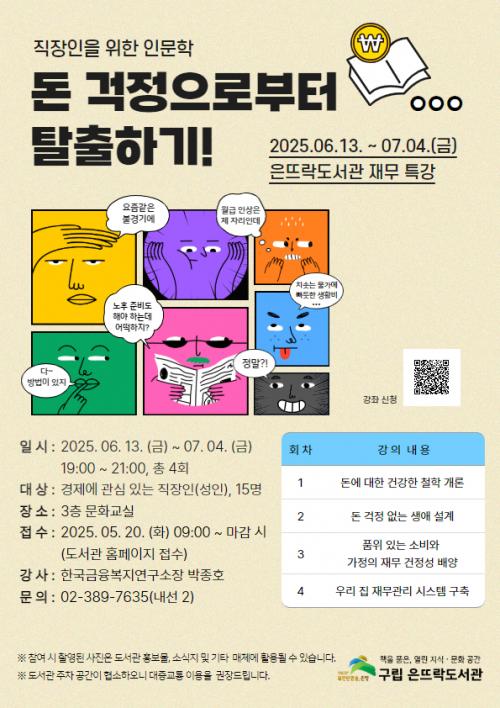[½Åµ¿¾Æ¹æ¼Û ÀºÆò±¸=À̽ŵ¿±âÀÚ] ¼­¿ï ÀºÆò±¸´Â ±¸¸³ Àº¶ß¶ôµµ¼­°ü¿¡¼­ °³°ü¿¬Àå ½Ã°£µ¿¾È Á÷ÀåÀÎÀ» À§ÇÑ Àι®ÇÐ ÇÁ·Î±×·¥ ¡®µ· °ÆÁ¤À¸·ÎºÎÅÍ Å»ÃâÇϱâ!¡¯¸¦ ¿î¿µÇÑ´Ù°í ¹àÇû´Ù. ¡®µ· °ÆÁ¤À¸·ÎºÎÅÍ Å»ÃâÇϱâ!¡¯ ÇÁ·Î±×·¥Àº µ·°ú ±ÝÀ¶À» ÁÖÁ¦·Î ÀÚº»°ú °æÁ¦¿¡ ´ëÇÑ ÀΡ¦