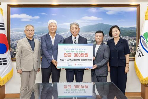 [½Åµ¿¾Æ¹æ¼Û ÀÎõ= À±¹Î½Ä ±âÀÚ]ÀÎõ±¤¿ª½Ã °è¾ç±¸(±¸Ã»Àå À±È¯)´Â 3ÀÏ, °è¾ç±¸ Áö¿ª»çȸº¸Àå´ëÇ¥ÇùÀÇü°¡ Áö¿ª ³» ¾î·Á¿î ÀÌ¿ôÀ» µ½±â À§ÇØ 300¸¸ ¿øÀ» ±âŹÇß´Ù°í ¹àÇû´Ù. À̹ø ¼º±ÝÀº º¹Áö »ç°¢Áö´ë¿¡ ³õÀÎ °ü³» ±âÈÄÀ§±â Ãë¾à°èÃþÀ» Áö¿øÇϱâ À§ÇØ ¸¶·ÃµÆÀ¸¸ç, ¡¦