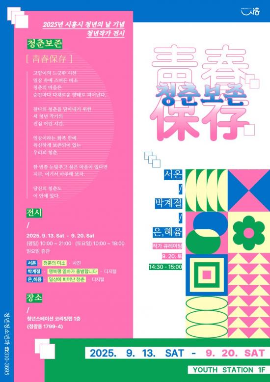 [½Åµ¿¾Æ¹æ¼Û ½ÃÈï½Ã=À̽ŵ¿±âÀÚ] ½ÃÈï½Ã´Â 2025 ½ÃÈï½Ã û³âÀÇ ³¯ ±â³äÇà»ç ¡®Ã»Ãá½Ã±×³Î in ½ÃÈ°ú ¿¬°èÇØ, 9¿ù 20ÀϱîÁö û³â½ºÅ×ÀÌ¼Ç ÄÚ¸®ºù·¦ 1Ãþ(Á¤¿Õµ¿ 1799-4)¿¡¼­ û³âÀÛ°¡ 3ÀÎÀÇ ¡®Ã»ÃẸÁ¸¡¯ Àü½Ãȸ¸¦ ¿¬´Ù. ¡®Ã»ÃẸÁ¸(青õðÜÁðí)¡¯Àº °í¾çÀÌÀÇ ´À¡¦