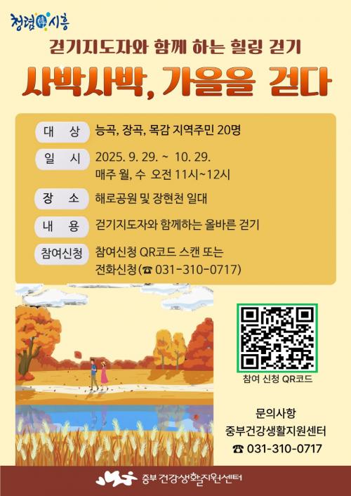 [½Åµ¿¾Æ¹æ¼Û ½ÃÈï½Ã=À̽ŵ¿±âÀÚ] ½ÃÈï½Ã¿¡¼­´Â 9¿ù 29ÀϺÎÅÍ 10¿ù 29ÀϱîÁö ¸ÅÁÖ ¿ù¤ý¼ö¿äÀÏ ¿ÀÀü 11½ÃºÎÅÍ 12½Ã ´É°îµ¿ ÇØ·Î°ø¿ø ¹× ÀåÇöõ ÀÏ´ë¿¡¼­ ¡®»ç¹Ú»ç¹Ú °¡À»À» °È´Ù¡¯ ÇÁ·Î±×·¥À» ¿î¿µÇÑ´Ù. Âü¿©ÀÚµéÀº ¸¼Àº ¹°ÀÌ È帣´Â ÀåÇöõÀ» µû¶ó °È´Â µ¿¾È °èÀýÀÇ ¡¦