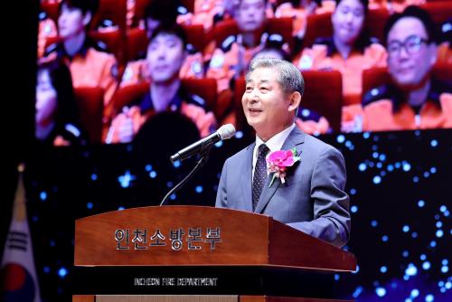 [½Åµ¿¾Æ¹æ¼Û ÀÎõ=À±¹Î½Ä±âÀÚ]ÀÎõ±¤¿ª½ÃÀÇȸ Á¤ÇØ±Ç ÀÇÀå(±¹¡¤¿¬¼ö±¸1)Àº 7ÀÏ ÀÎõ±Û·Î¹úÄ·ÆÛ½º ´ë°­´ç¿¡¼­ ¿­¸° ¡®Á¦63Áֳ⠼ҹæÀÇ ³¯ ±â³ä½Ä¡¯¿¡ Âü¼®ÇØ ½Ã¹ÎÀÇ ¾ÈÀüÀ» À§ÇØ Çå½ÅÇÏ´Â ÀÎõ ¼Ò¹æ°ø¹«¿øµé¿¡°Ô ±íÀº Á¸°æ°ú °¨»ç¸¦ Ç¥Çß´Ù. À̹ø Çà»ç´Â ÀÎõ¼Ò¹æº»ºÎ¡¦