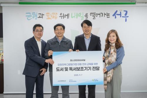 [½Åµ¿¾Æ¹æ¼Û ÀÎõ=À±¹Î½Ä±âÀÚ]ÀÎõ ¼­±¸(±¸Ã»Àå °­¹ü¼®)´Â Áö³­ 7ÀÏ ¢ßÆ÷½ºÄÚÀÎÅͳ»¼Å³Î(º»ºÎÀå ¹Îâ±â)·ÎºÎÅÍ ´Ù¹®È­ °¡Á¤ ¾Æµ¿ ¾ð¾î¹ß´ÞÀ» À§ÇÑ µµ¼­ ¹× µµ¼­±â±â¸¦ Àü´Þ¹Þ¾Ò´Ù. À̳¯ Çà»ç´Â ÀÎõ ¼­±¸ ºÀÈ­ÃʵîÇб³(±³Àå ÀÌÁØÀÚ), ÀÎõ ¼­±¸ õ¸¶ÃʵîÇб³(±³À塦