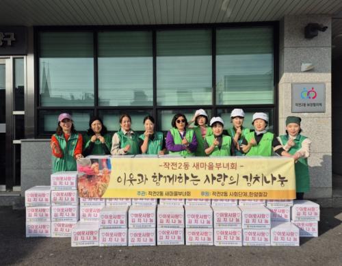 [½Åµ¿¾Æ¹æ¼Û ÀÎõ=À±¹Î½Ä±âÀÚ]ÀÎõ °è¾ç±¸ ÀÛÀü2µ¿ »õ¸¶À»ºÎ³àȸ(ȸÀå ½ÅÇʼø)´Â 11¿ù 12ÀÏ ¡®ÀÌ¿ô»ç¶û ±èÄ¡³ª´®¡¯ Çà»ç¸¦ ¿­°í Áö¿ª ³» Ãë¾à°èÃþ°ú °æ·Î´ç¿¡ ±èÄ¡ 80¹Ú½º¸¦ Àü´ÞÇß´Ù. À̹ø Çà»ç´Â ÀÛÀü2µ¿ »çȸ´ÜüÀÇ ÈÄ¿øÀ¸·Î ÁøÇàµÆÀ¸¸ç, »õ¸¶À»ºÎ³àȸ¿øµéÀÌ Á÷Á¢¡¦