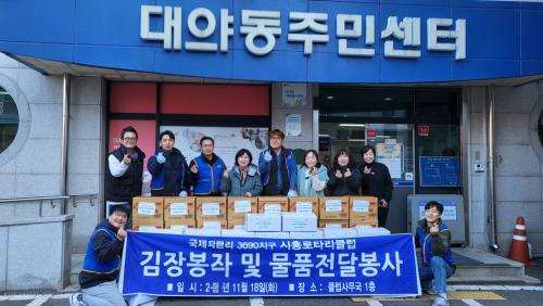 [½Åµ¿¾Æ¹æ¼Û ½ÃÈï½Ã=À̽ŵ¿±âÀÚ] ±¹Á¦·ÎŸ¸® 3690Áö±¸ ½ÃÈï·ÎŸ¸®Å¬·´Àº Áö³­ 11¿ù 18ÀÏ ´ë¾ßµ¿ ¸¶À»ÀÚÄ¡°ú¿¡ ±èÀå±èÄ¡¿Í ¶ó¸é 30»óÀÚ¸¦ Àü´ÞÇß´Ù. ½ÃÈï·ÎŸ¸®Å¬·´Àº ´ë¾ßµ¿ °ü³» Ãë¾à°èÃþÀ» À§ÇÑ Áö¼ÓÀûÀÎ ³ª´® Ȱµ¿À» À̾î¿À°í ÀÖÀ¸¸ç, Áö³­ÇØ¿¡µµ ¹é¹Ì¤ý±èÀå±èÄ¡¤ý¡¦