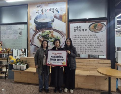 [½Åµ¿¾Æ¹æ¼Û ½ÃÈï½Ã=À̽ŵ¿±âÀÚ] ºñ»ê´©·îÁö¹é¼÷ ¹°¿ÕÈ£¼öÁ¡ÀÌ Áö³­ 11¿ù 21ÀÏ Ãß¿î °Ü¿ï ¼Ò¿ÜµÈ ÀÌ¿ô¿¡°Ô µû¶æÇÑ À½½ÄÀ» ÀüÇϰíÀÚ Á¤¿Õ1µ¿ Ãë¾à°èÃþÀ» À§ÇØ °¥ºñÅÁ 30ÀκÐÀ» ÈÄ¿øÇß´Ù. À̹ø ÈÄ¿øÀº Áö¿ª ³» Àú¼Òµæ °¡±¸¿Í µ¶°Å³ëÀÎ µî °æÁ¦Àû ¾î·Á¿òÀ» °Þ´Â ÀÌ¿ôµé¿¡¡¦