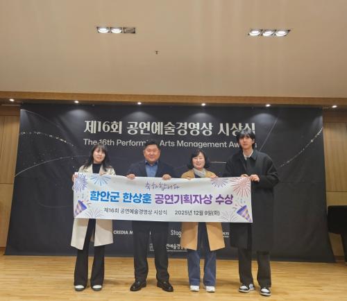[½Åµ¿¾Æ¹æ¼Û °æ³²ÇÔ¾È=À̽ŵ¿±âÀÚ] ÇԾȱºÀº Áö³­ 9ÀÏ Çѱ¹°ø¿¬¿¹¼ú°æ¿µÇùȸ°¡ ÁÖ°üÇÏ´Â Á¦16ȸ °ø¿¬¿¹¼ú°æ¿µ»ó ½Ã»ó½Ä¿¡¼­ ÇԾȹ®È­¿¹¼úȸ°ü ÇÑ»óÈÆ °ø¿¬±âȹÆÀÀåÀÌ ¡®°ø¿¬±âȹÀÚ»ó¡¯À» ¼ö»óÇß´Ù°í ¹àÇû´Ù. ÇÑ»óÈÆ ÆÀÀåÀº 2006³âºÎÅÍ ÇԾȹ®È­¿¹¼úȸ°ü¿¡¼­ °ø¿¬±âȹ¡¦
